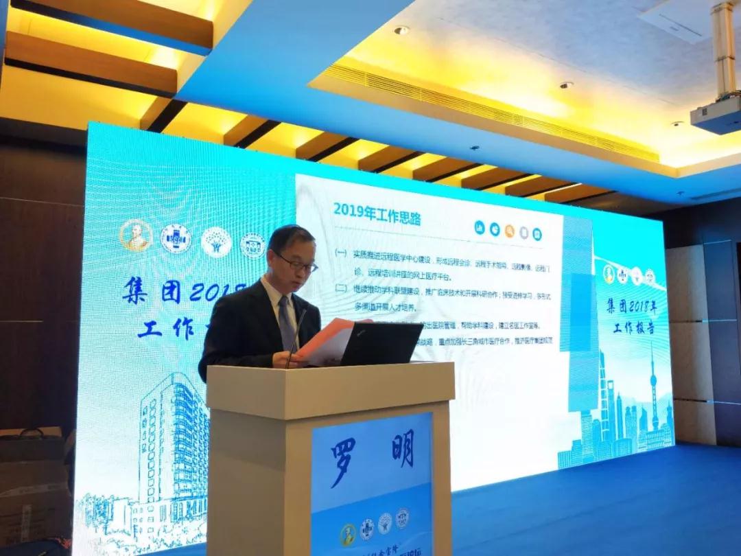 (图:同济医院医疗执行理事长罗明做工作报告)